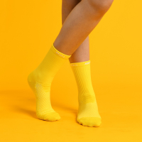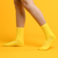 We may have to call a truce between polyester vs cotton in the case of athletic socks. Their combination works well together in this type of sock. While the cotton absorbs excess sweat, the polyester is moisture-wicking and fast-drying, so they make a good team.